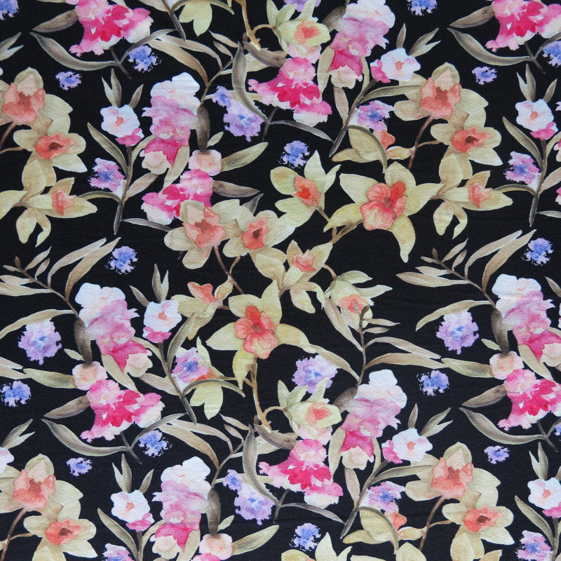 Reaction Blue Ditsy Garden Poly Lycra Knit Fabric The Fabric Fairy